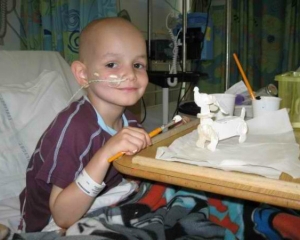κρεβάτι ενός νοσοκομείου που ζωγραφίζει. Το μικρό αγόρι πάσχει από