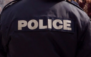 "αστυνομικός" φορούσε μπουφάν που έγραφε police, καπέλο τζόκεϊ