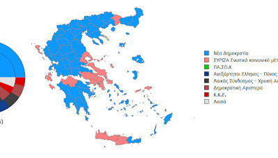 Σε 10 από τις 56 εκλογικές περιφέρειες αναδείχθηκε πρώτο κόμμα διαφορετικό απ' ότι στις εκλογές του περασμένου Μαΐου. Συγκεκριμένα, στην Α' Αθηνών, στην Α' Πειραιώς και στην Α' Θεσσαλονίκης πρώτο κόμμα αναδείχθηκε η ΝΔ, ενώ στις εκλογές...