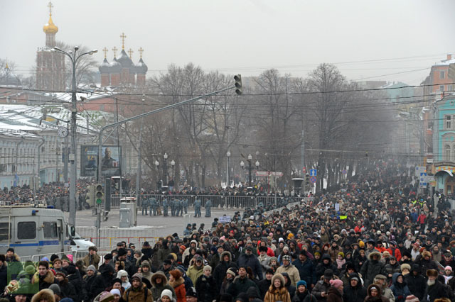 Περίπου 20.000 Ρώσοι διαδήλωσαν στη Μόσχα διαμαρτυρόμενοι κατά του πρόσφατου νόμου που απαγορεύει στους Αμερικανούς τις υιοθεσίες παιδιών από τη Ρωσία, ενώ το θερμόμετρο είχε πέσει στους -13 βαθμούς Κελσίου.