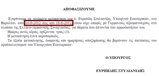 Ένα ταξίδι-φάντασμα στη Γερμανία φαίνεται ότι πραγματοποίησε ο Υπ.Εσωτερικών Ευριπίδης Στυλιανίδης την επομένη της Εορτής της Παναγίας, δηλαδή σε μια νεκρή πολιτικά περίοδο.